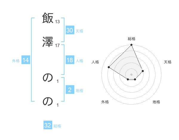 飯澤 ののさんの天格は30画の2点!