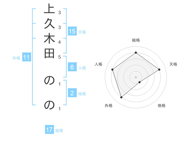 上久木田 ののさんの総格は17画の4点!