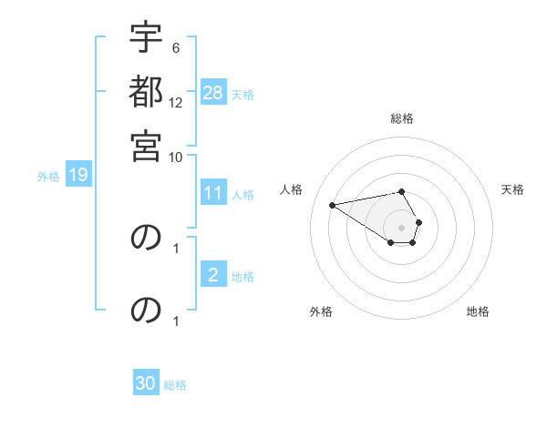 宇都宮 ののさんを姓名の画数から五運を鑑定