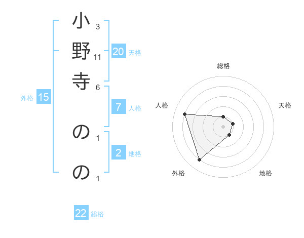 小野寺 ののさんの外格は15画の4点!