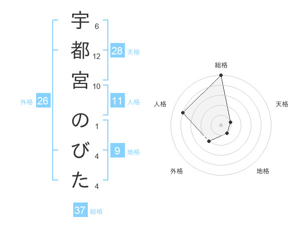 宇都宮 のびたさんの総格は37画の5点!