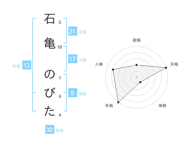石亀 のびたさんを姓名の画数から五運を鑑定