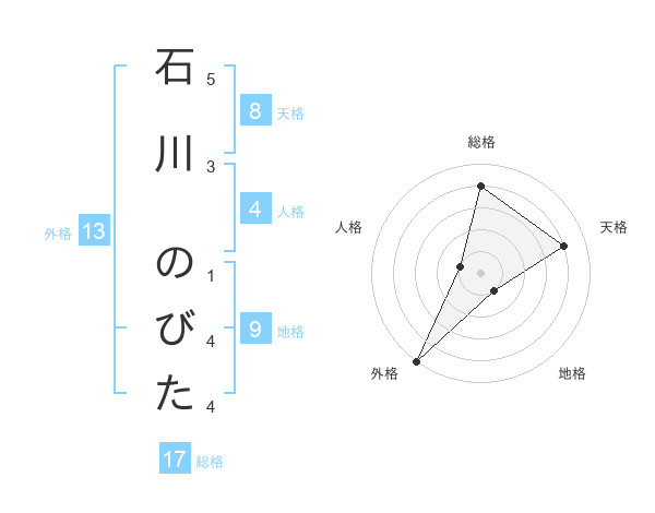 石川 のびたさんの総格は17画の4点