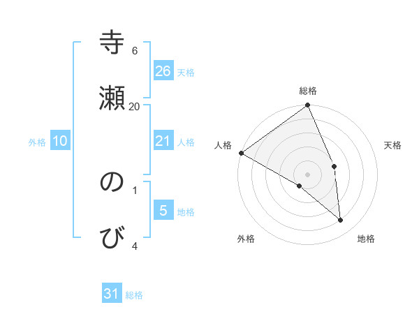 寺瀬 のびさんの総格は31画の5点!