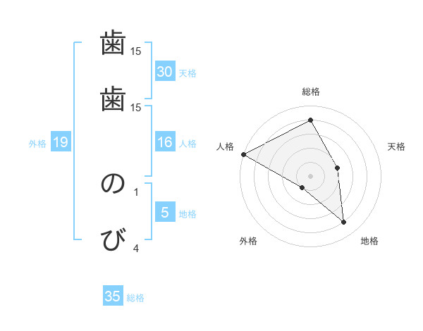 歯歯 のびさんの総格は35画の4点!