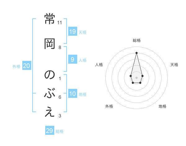 常岡 のぶえさんを姓名の画数から五運を鑑定