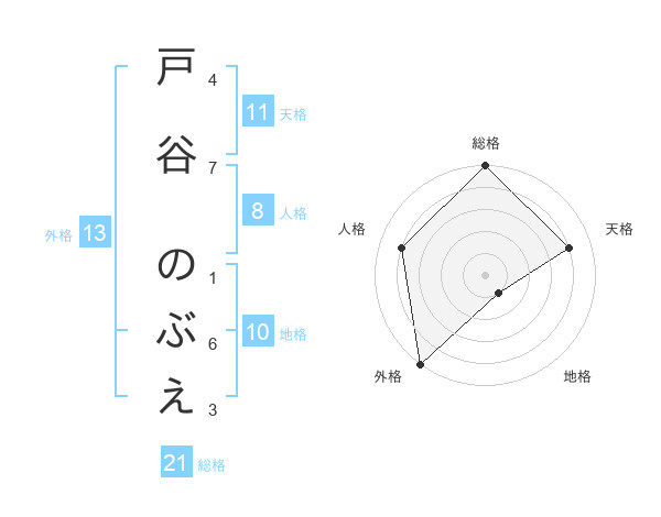戸谷 のぶえさんの総格は21画の5点!