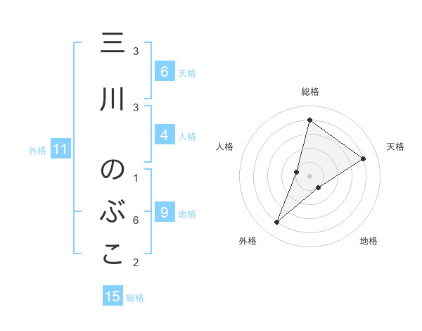 三川 のぶこさんの総格は15画の4点!