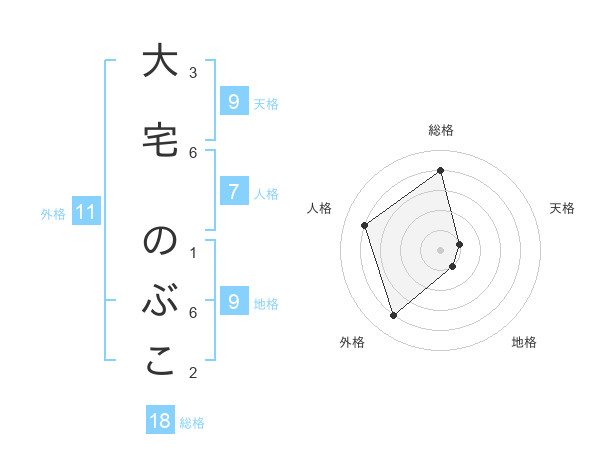 大宅 のぶこさんの外格は11画の4点