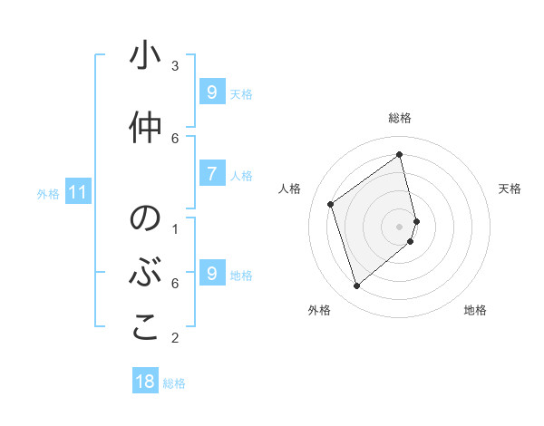 小仲 のぶこさんの天格は9画の1点