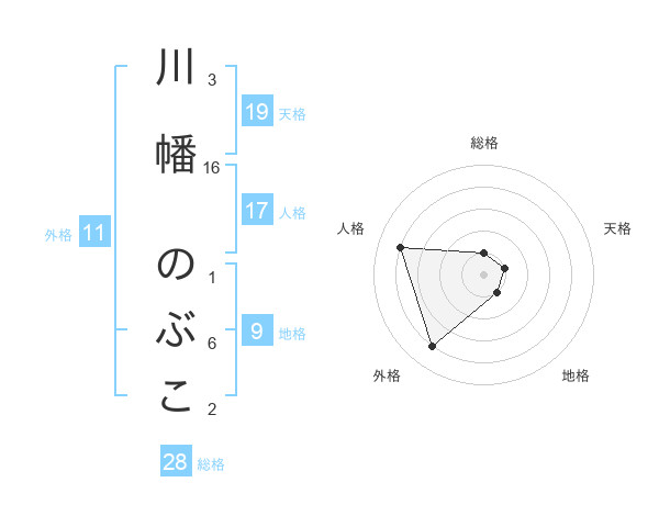 川幡 のぶこさんの総格は28画の1点!