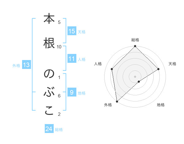 本根 のぶこさんの外格は13画の5点!