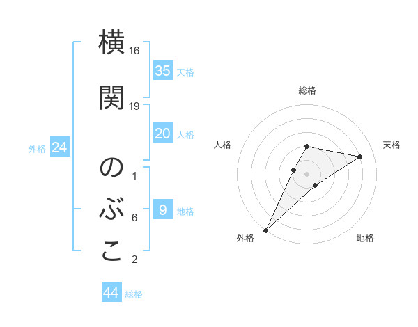 横関 のぶこさんを姓名の画数から五運を鑑定