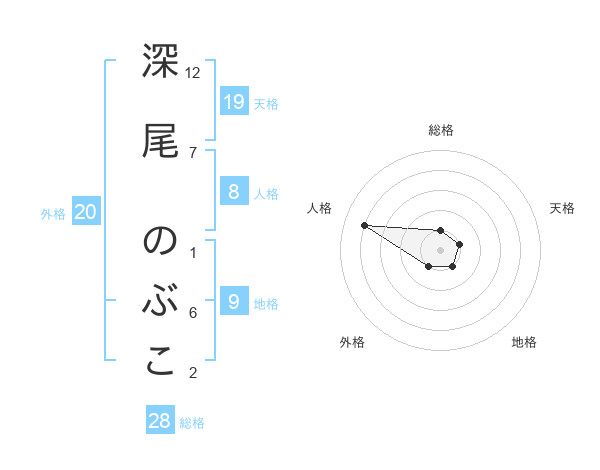 深尾 のぶこさんの総格は28画の1点!