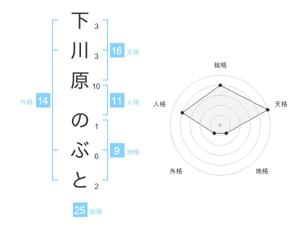 下川原 のぶとさんの総格は25画の4点!