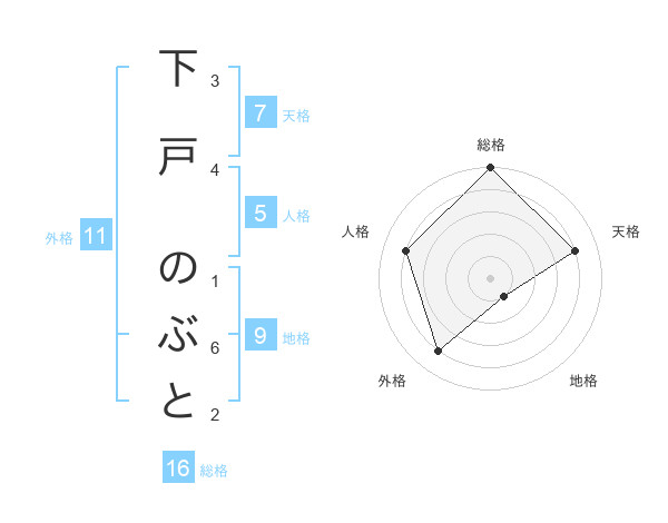 下戸 のぶとさんを姓名の画数から五運を鑑定
