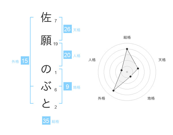佐願 のぶとさんの総格は35画の4点!