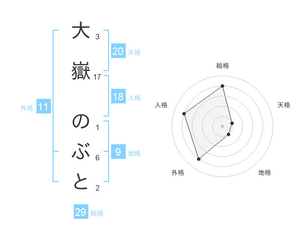 大嶽 のぶとさんを姓名の画数から五運を鑑定