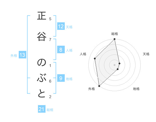正谷 のぶとさんの外格は13画の5点!
