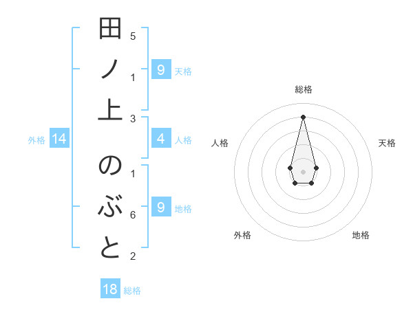 田ノ上 のぶとさんを姓名の画数から五運を鑑定