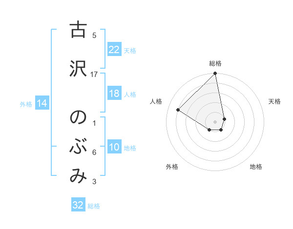 古沢 のぶみさんを姓名の画数から五運を鑑定