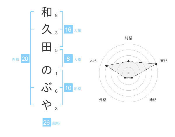 和久田 のぶやさんを姓名の画数から五運を鑑定