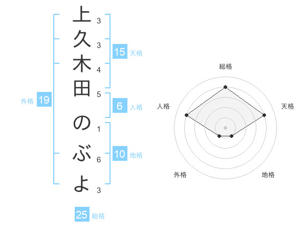 上久木田 のぶよさんの総格は25画の4点!