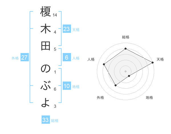 榎木田 のぶよさんを姓名の画数から五運を鑑定