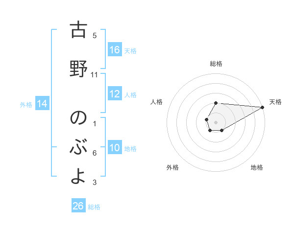 古野 のぶよさんを姓名の画数から五運を鑑定
