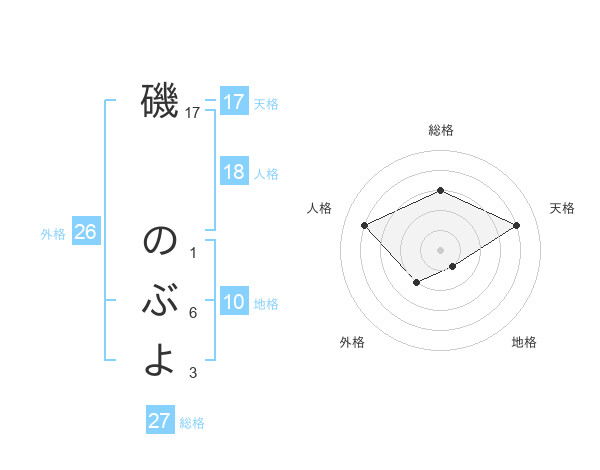 磯 のぶよさんを姓名の画数から五運を鑑定