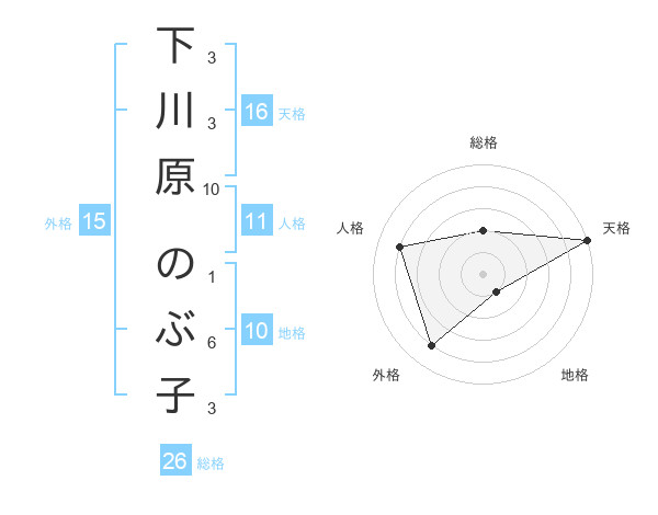 下川原 のぶ子さんを姓名の画数から五運を鑑定