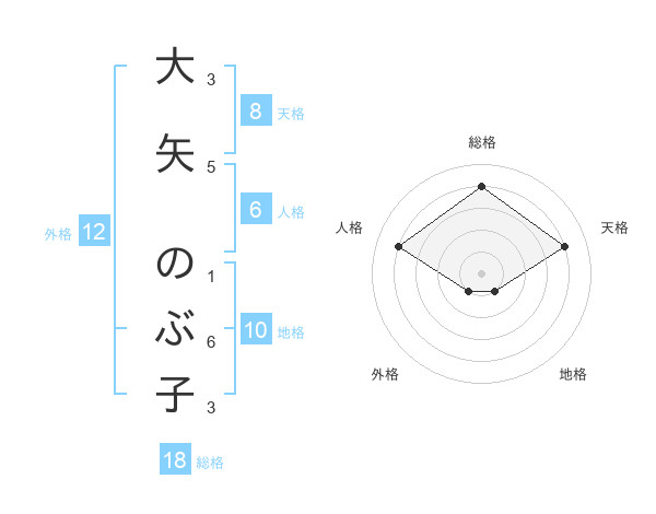 大矢 のぶ子さんを姓名の画数から五運を鑑定