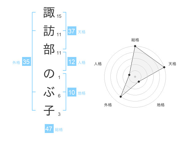 諏訪部 のぶ子さんを姓名の画数から五運を鑑定