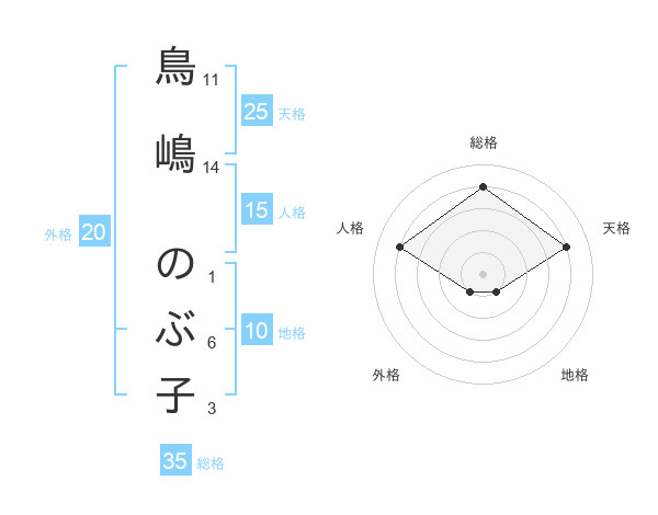 鳥嶋 のぶ子さんの外格は20画の1点!