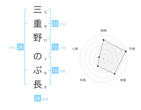 三重野 のぶ長さんの天格は23画の5点!