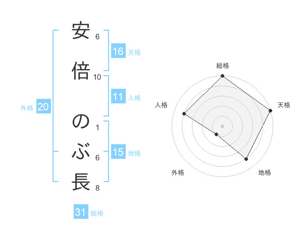 安倍 のぶ長さんを姓名の画数から五運を鑑定