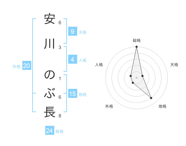 安川 のぶ長さんの総格は24画の5点!