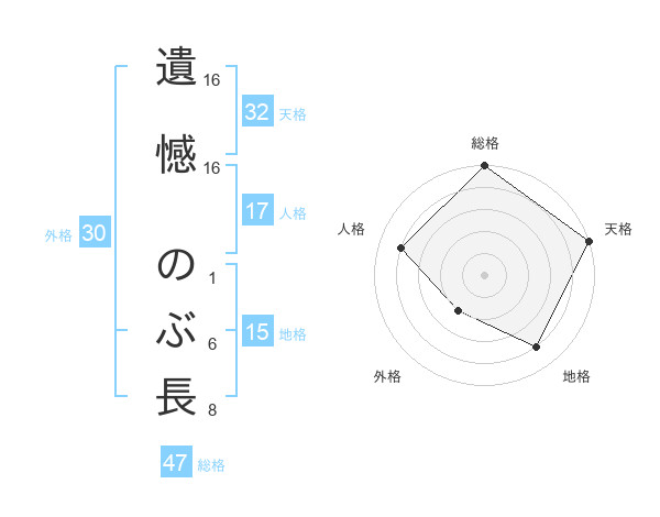遺憾 のぶ長さんを姓名の画数から五運を鑑定