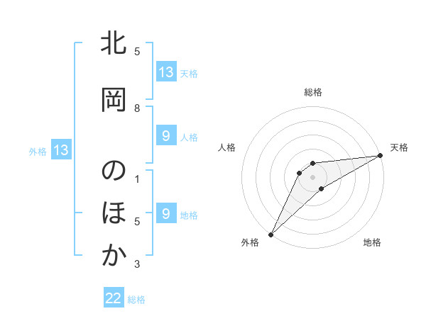 北岡 のほかさんの天格は13画の5点!