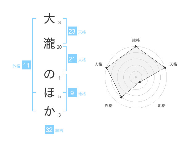 大瀧 のほかさんを姓名の画数から五運を鑑定