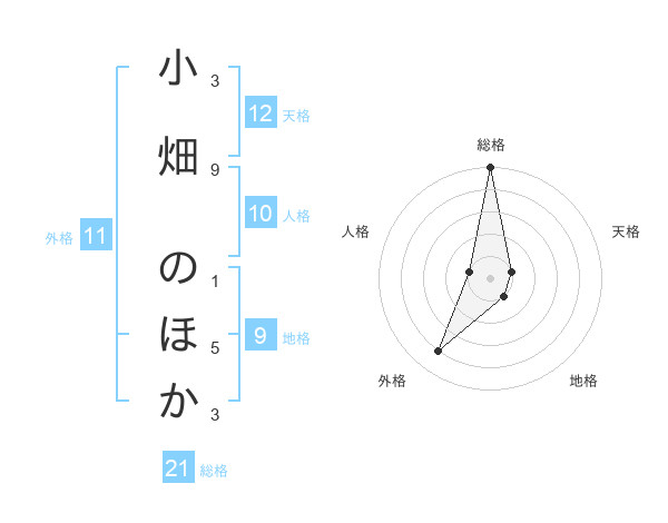 小畑 のほかさんの総格は21画の5点!