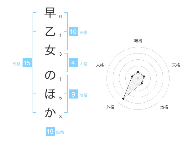 早乙女 のほかさんの外格は15画の4点!