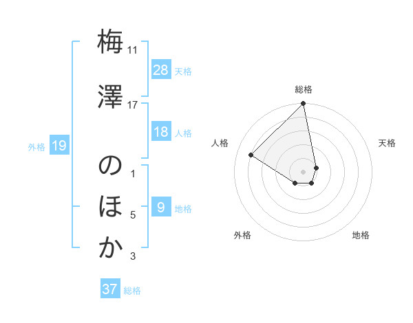 梅澤 のほかさんを姓名の画数から五運を鑑定