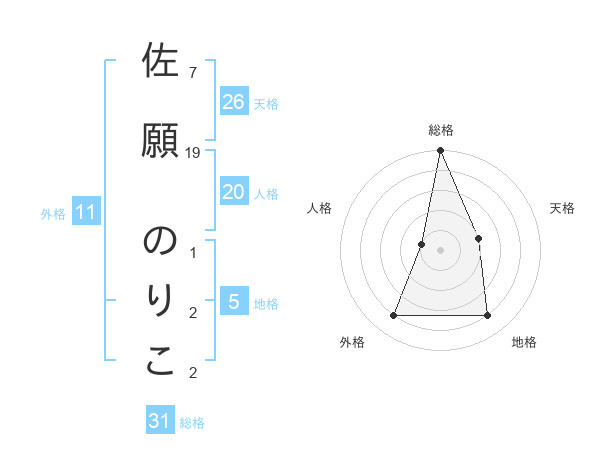 佐願 のりこさんを姓名の画数から五運を鑑定