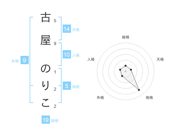 古屋 のりこさんの総格は19画の1点