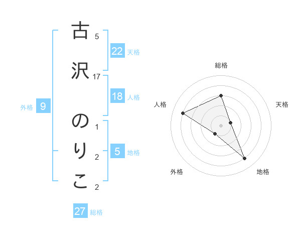 古沢 のりこさんの総格は27画の3点!