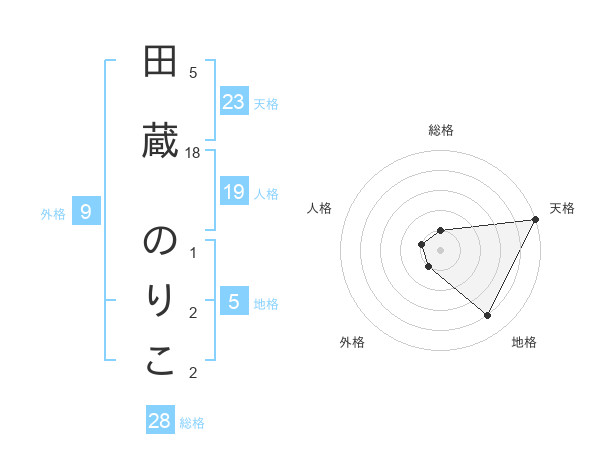 田蔵 のりこさんの天格は23画の5点!