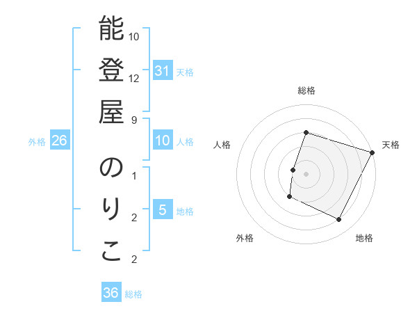 能登屋 のりこさんを姓名の画数から五運を鑑定