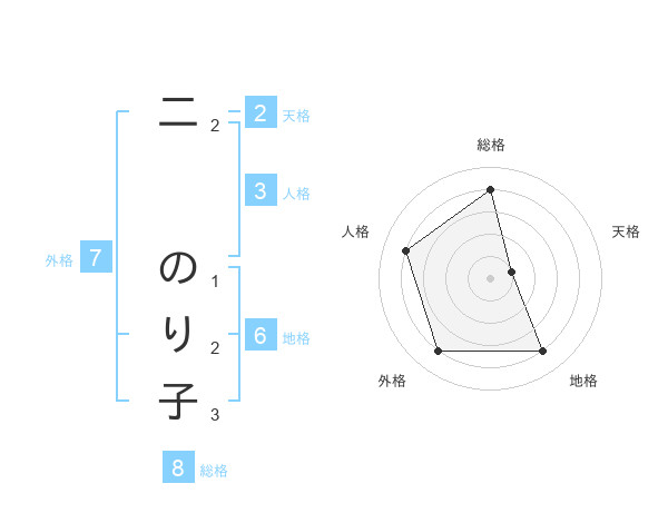 二 のり子さんの総格は8画の4点!