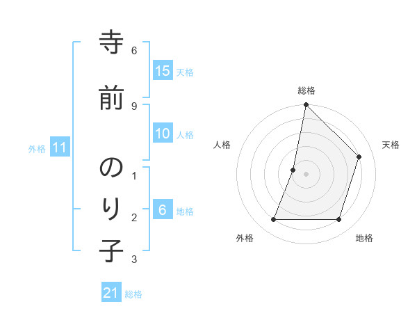 寺前 のり子さんを姓名の画数から五運を鑑定